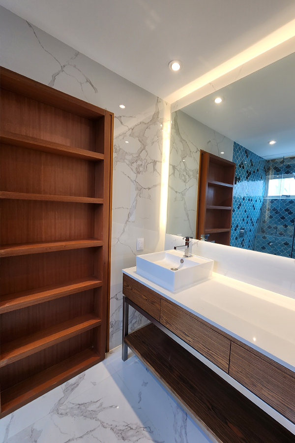 Este departamento tuvo una segunda vida al ser completamente desmantelado y reconstruido por completo de nuevo, aprovechando reparaciones necesarias debido al uso, se reformó este hogar por completo. Cambio de distribución interior, modificación total en acabados en muros, pisos, cancelería, instalaciones, carpintería, equipamiento y mobiliario. Esta obra se concluyó exactamente días antes de recibir las fiestas decembrinas estrenando absolutamente cada rincón.